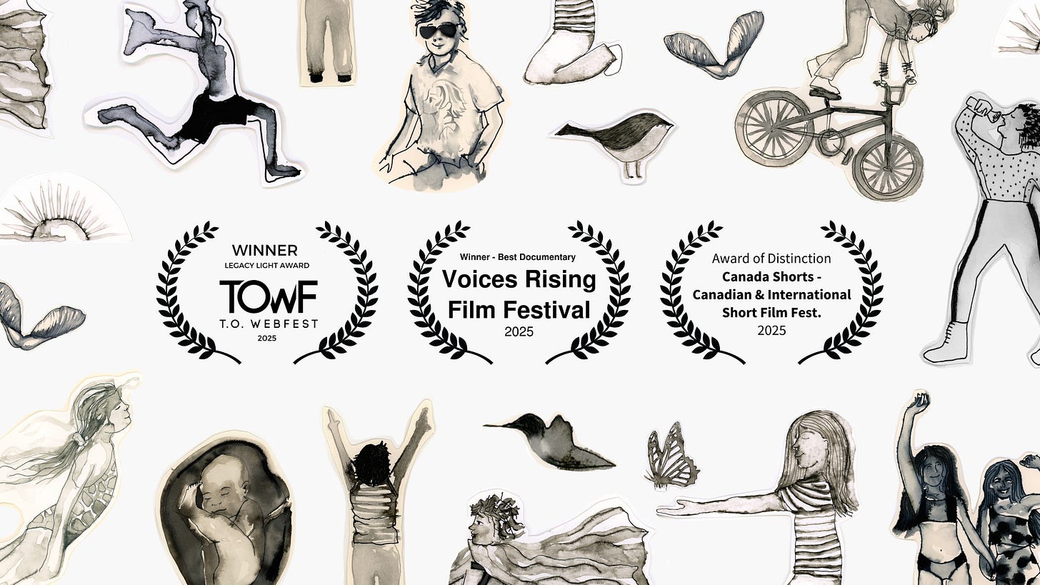 When I was holed up in a funny old converted classroom at Artscape Gibraltar Point on Toronto Island in August 2024, I had no idea the stories I was writing were going to become a series of animated shorts that would screen at film festivals - much less win some awards. I just said to the kind and talented Jessica Hiemstra, “I feel like these stories need to be videos somehow.” Jessica figured out the somehow and it was perfect.